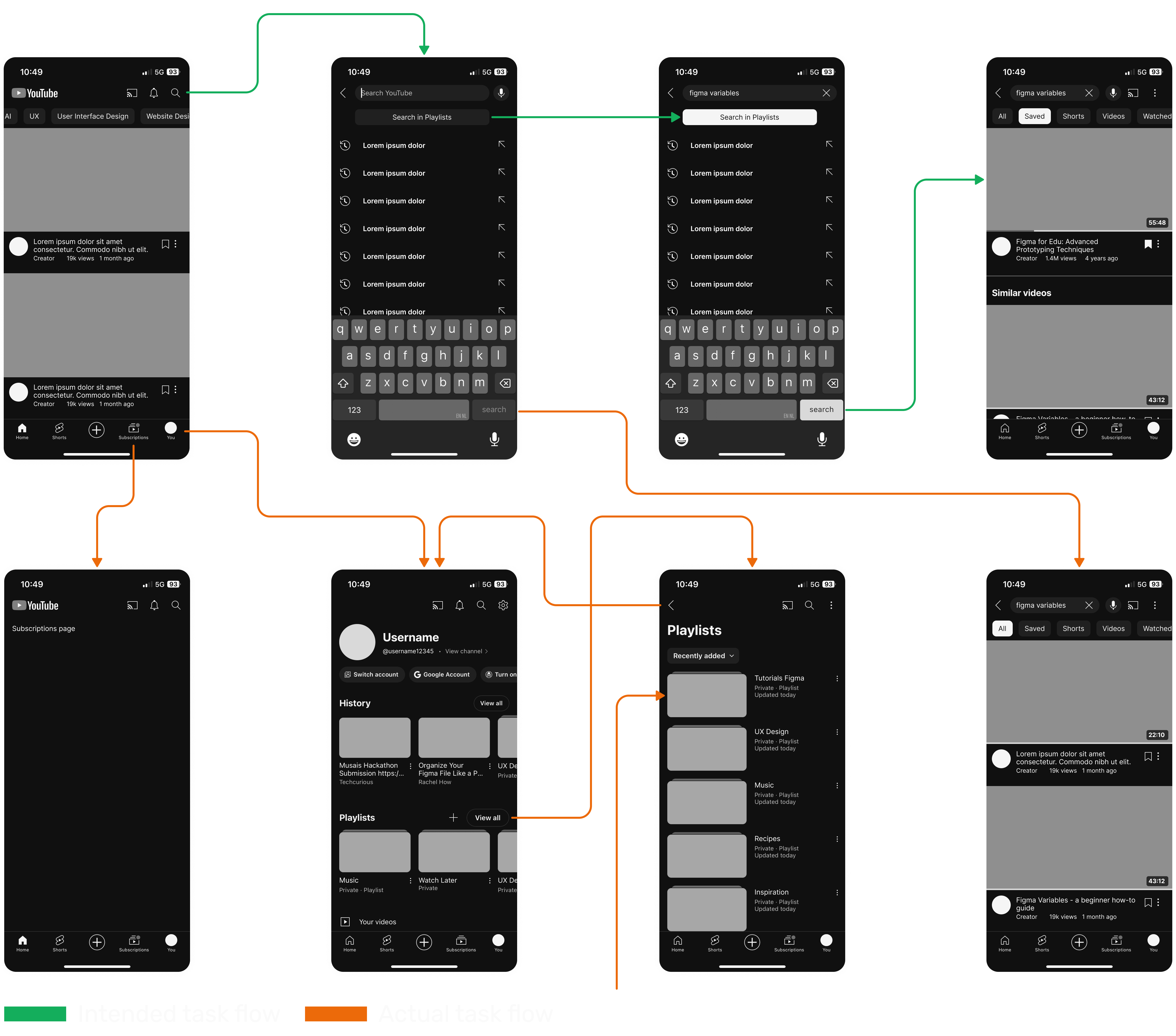 This testing provided valuable insights into how users interact with the platform and their existing mental models for navigating and finding content within YouTube. These insights were instrumental in redesigning both the user flow and high-fidelity wireframes to better align with user expectations and behavior.
