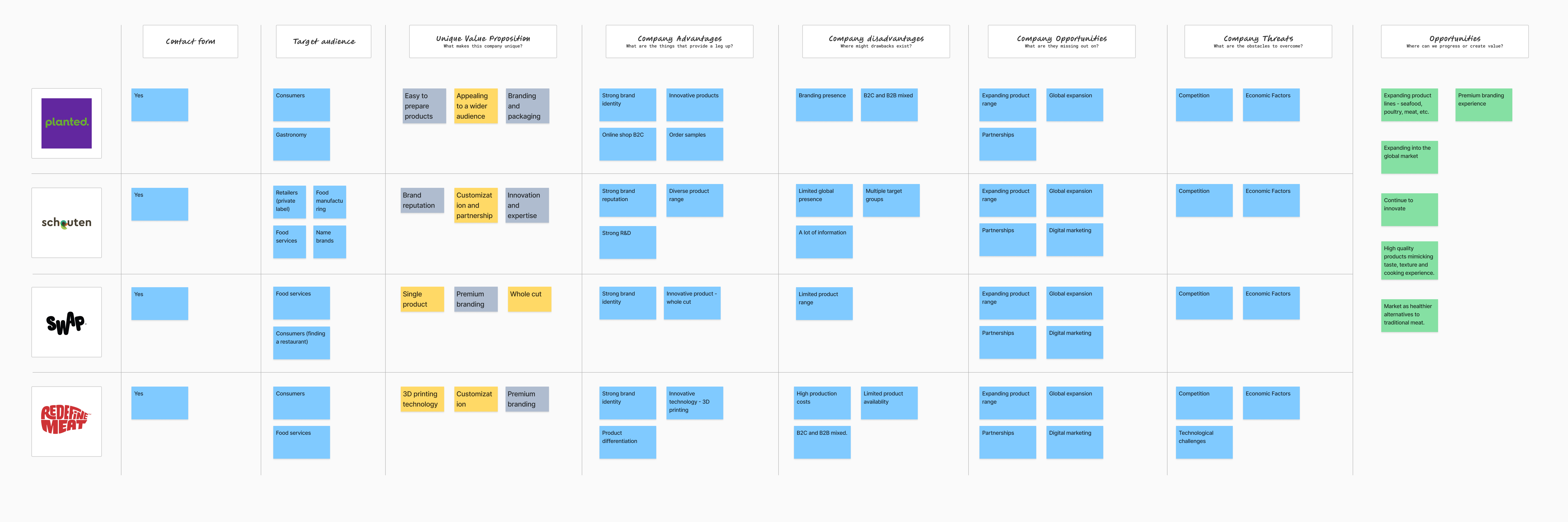 This analysis helped to identify the target audience and unique value propositions of competitors. While Rival Foods focuses on the B2B market, some competitors also serve the consumer market.