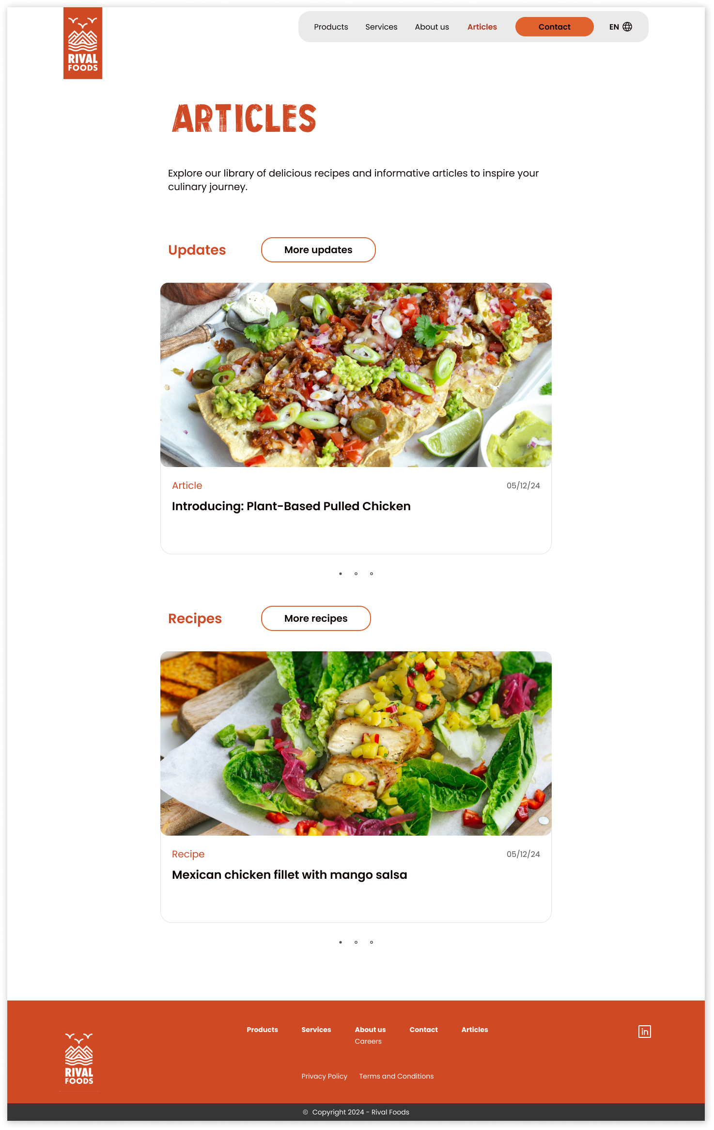 I have only designed a selection of pages for the prototype. As a next step, I recommend designing the service page and an article page to enhance the prototype's completeness and functionality. This will allow users to explore further within the prototype, such as searching for specific recipes or company updates.