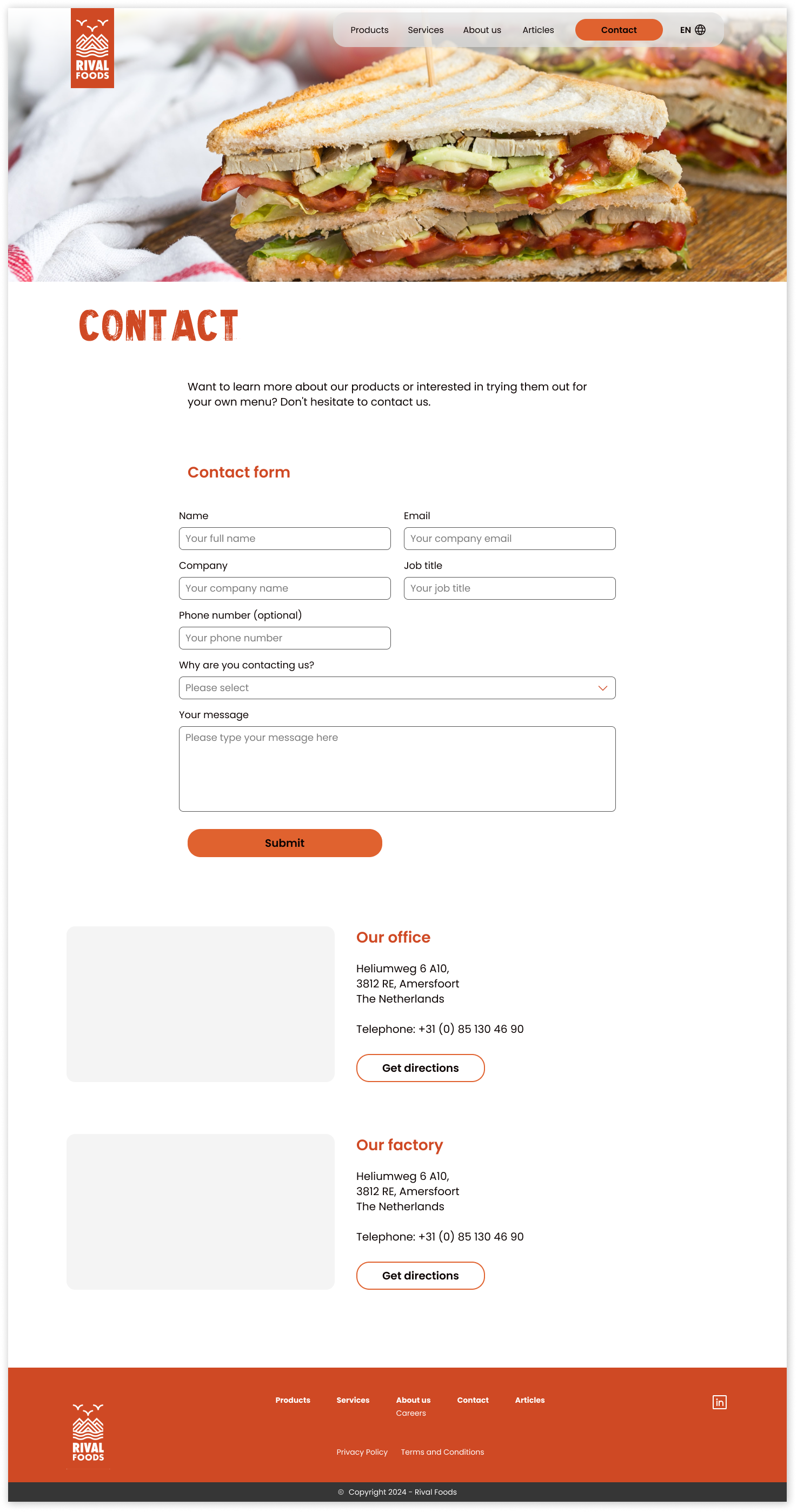 I designed a responsive web design solution for both mobile and desktop viewports, specifically addressing the needs and goals of the B2B market, including food purchasers and head chefs.
